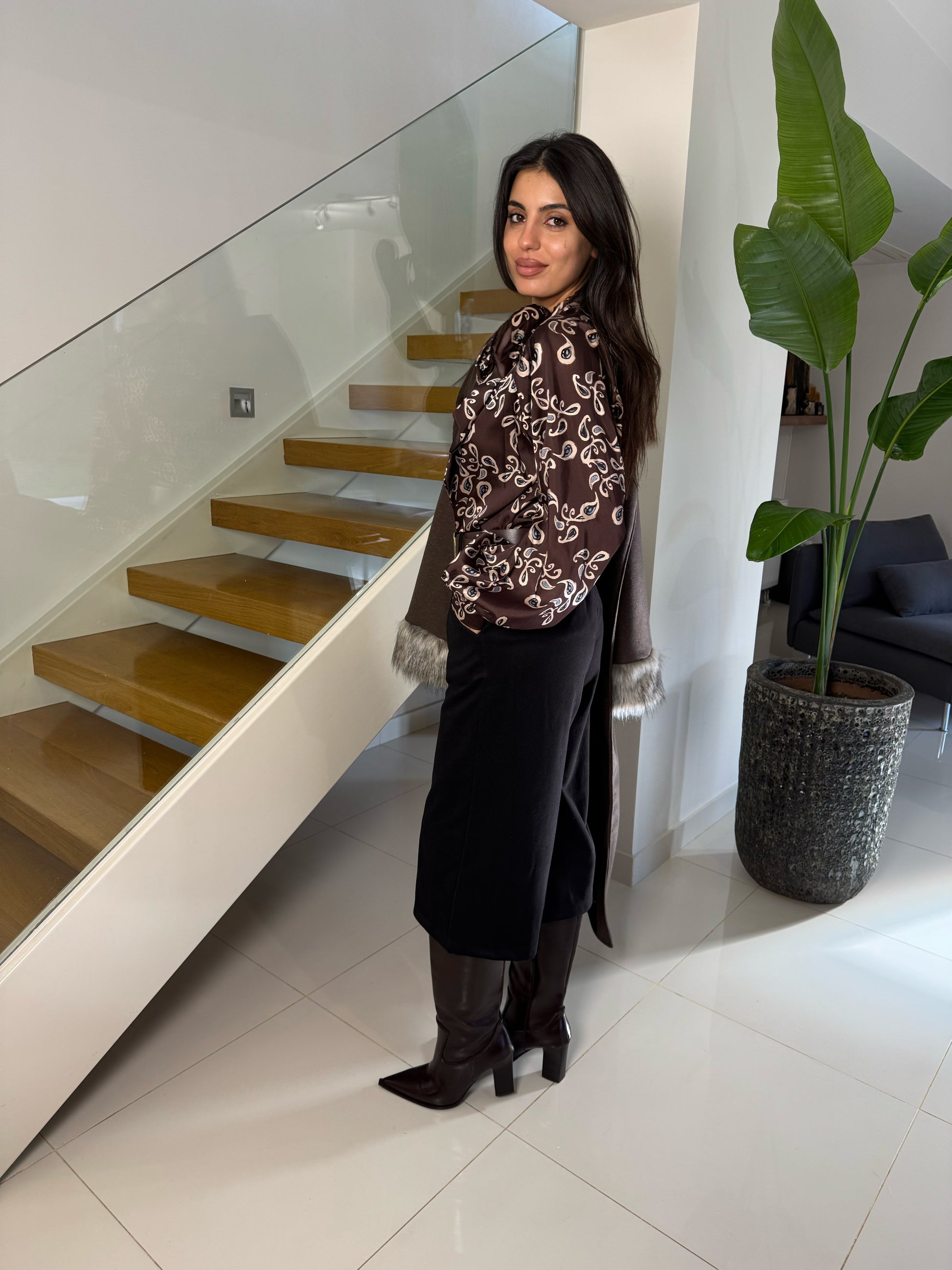Η κλασική ζιπ κιλότ σε κομψή γραμμή που δεν πρέπει να λείπει από καμία γκαρνταρόμπα. Με ψηλή μέση, άνετη εφαρμογή και διαχρονικό κόψιμο, προσφέρει τέλεια ισορροπία μεταξύ άνεσης και στυλ. Το ύφασμά της αγκαλιάζει το σώμα χωρίς να κολλάει και ταιριάζει σε άπειρους συνδυασμούς, από πουκάμισα μέχρι πλεκτά.