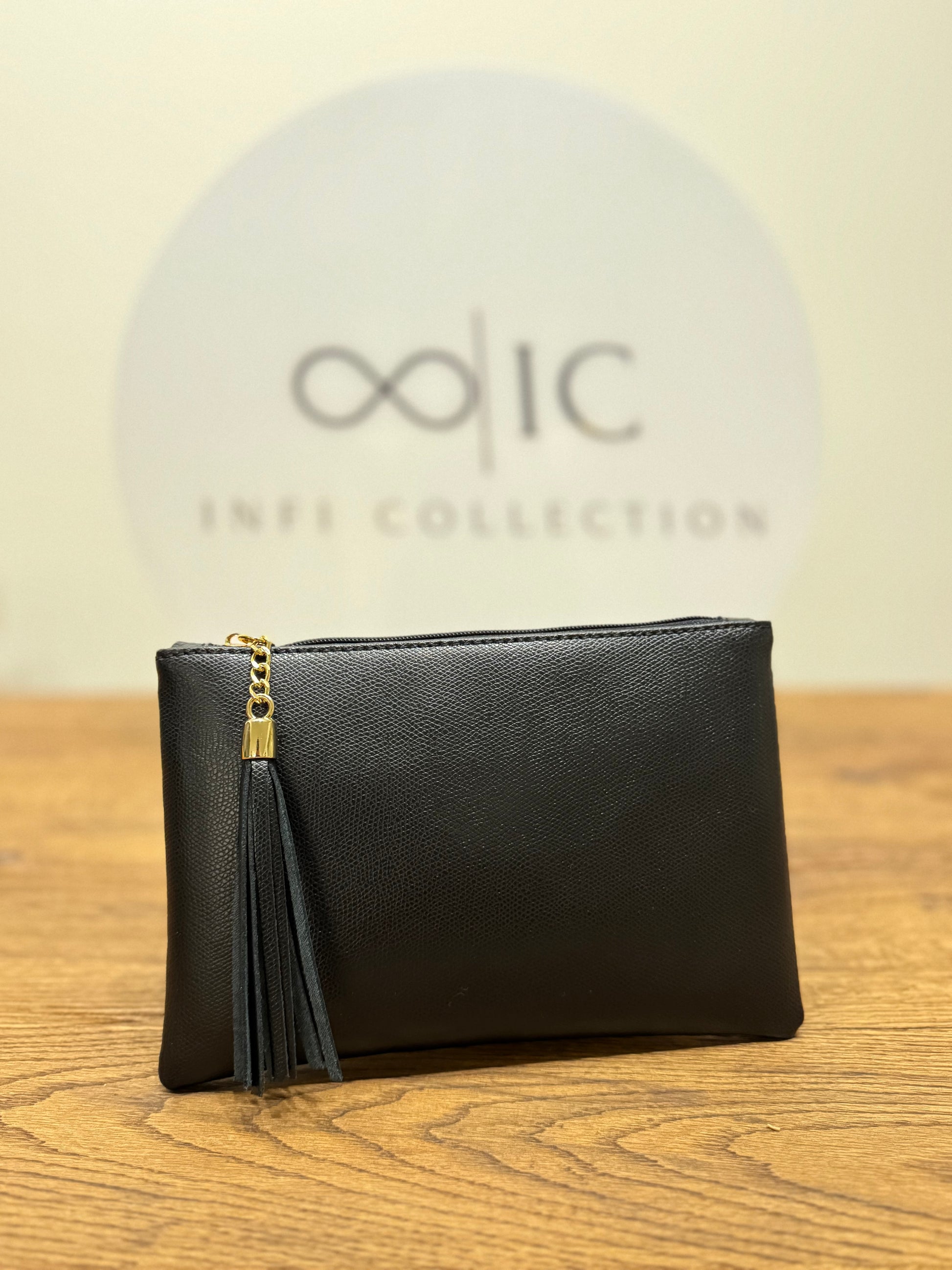 Δώσε κομψότητα σε κάθε σου εμφάνιση με αυτήν την μαύρη τσάντα, ιδανικό για βραδινές εξόδους και ιδιαίτερες περιστάσεις. Η minimal γραμμή της και το διαχρονικό μαύρο χρώμα την καθιστούν ένα must-have αξεσουάρ που ταιριάζει με κάθε look.