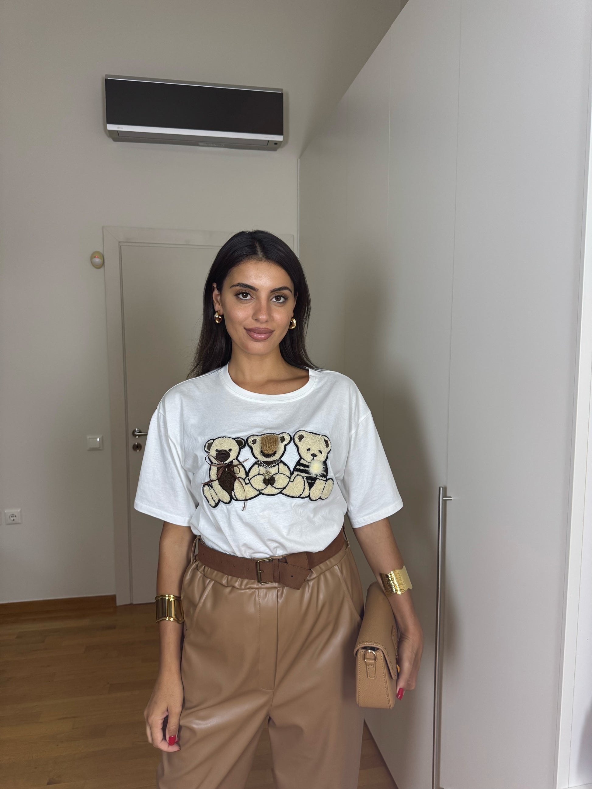 Άνετη και μοντέρνα κοντομάνικη μπλούζα με παιχνιδιάρικο σχέδιο αρκούδου στο μπροστινό μέρος. Κατασκευασμένη από μαλακό και δροσερό ύφασμα, ιδανική για καθημερινή χρήση. Ο κλασικός της σχεδιασμός την κάνει εύκολη στον συνδυασμό με τζιν, σορτς ή παντελόνι, προσθέτοντας μια χαριτωμένη και νεανική πινελιά στο look.