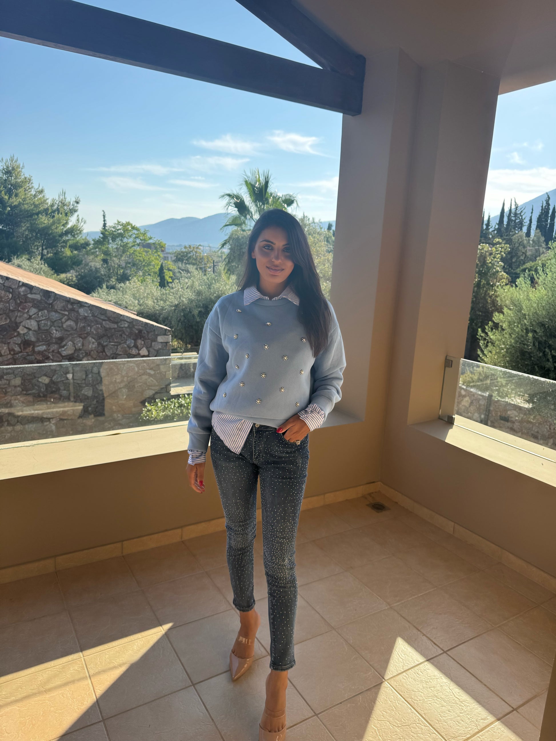 Πουλόβερ Baby Blue με Διακοσμητικά Στρας