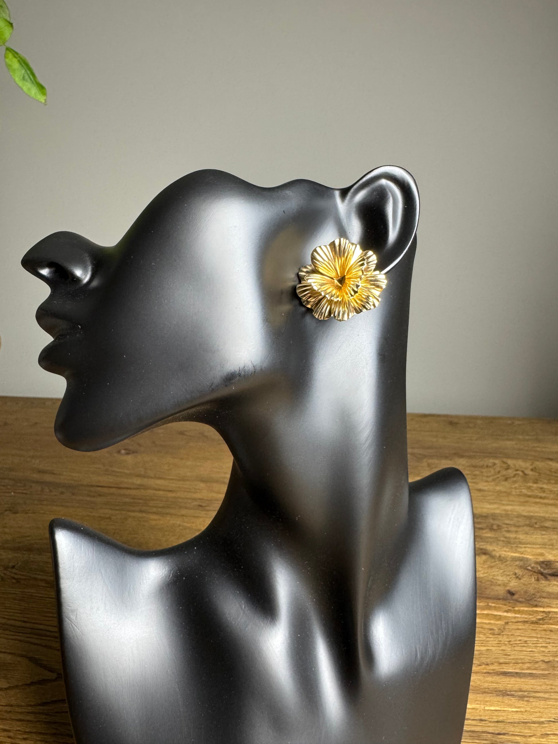 Λάμψε με αυτά τα εντυπωσιακά χρυσά σκουλαρίκια.Το διπλό floral μοτίβο δημιουργεί μία εντυπωσιακή, θηλυκή εμφάνιση, ενώ η χρυσή απόχρωση προσθέτει λάμψη και κομψότητα.