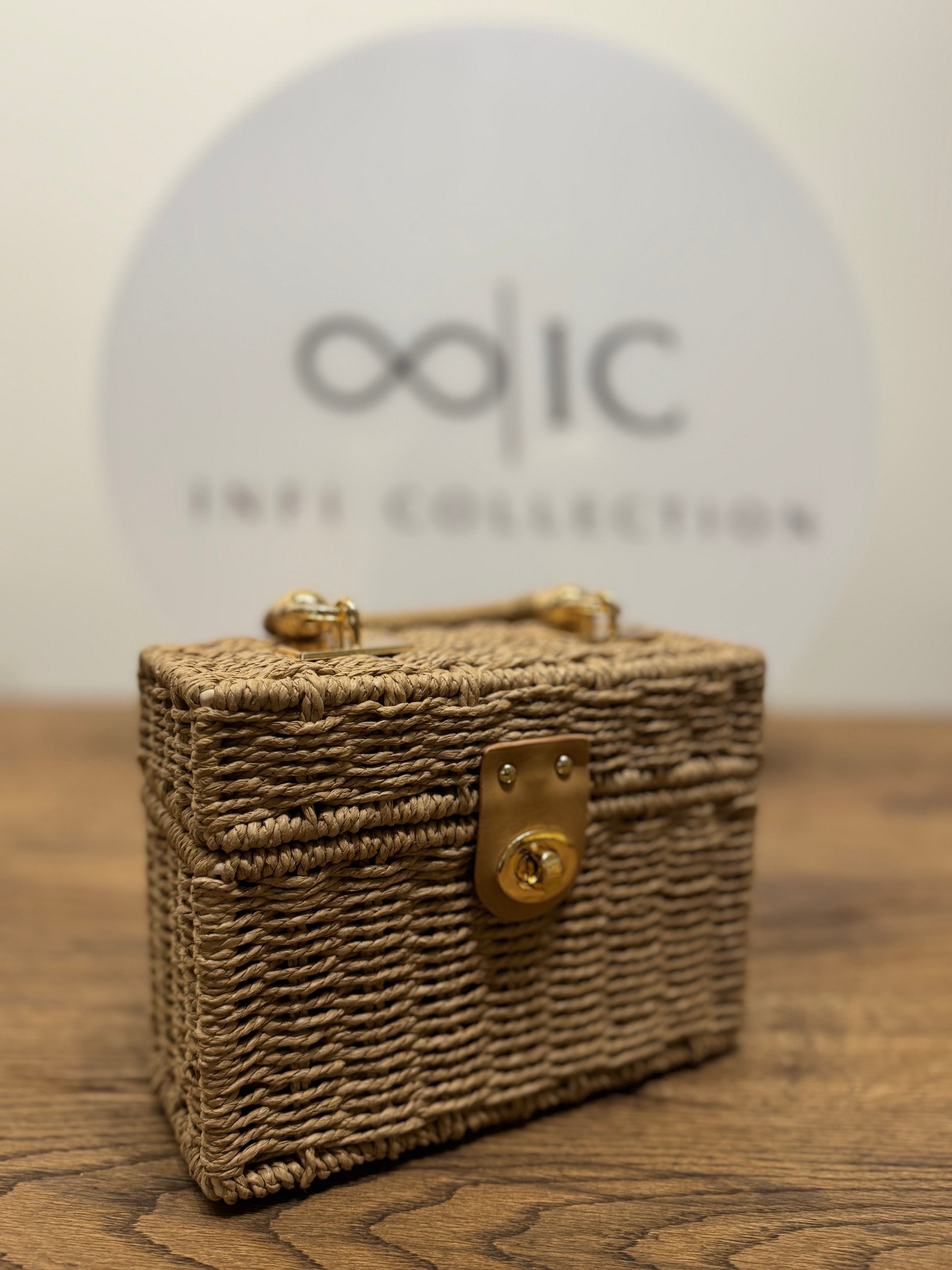 Δώστε στυλ και κομψότητα σε κάθε σας εμφάνιση με αυτή την υπέροχη χειροποίητη τσάντα από ψάθα. Διαθέτει μοντέρνο σχεδιασμό σε κλασικό φυσικό χρώμα, με χρυσές λεπτομέρειες και μεταλλικό κούμπωμα που της χαρίζουν πολυτελή αίσθηση.